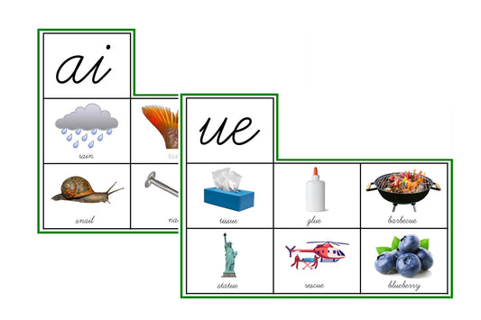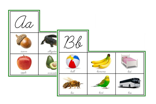 Green Picture Matching Cards, Cursive - Set A (PDF)
