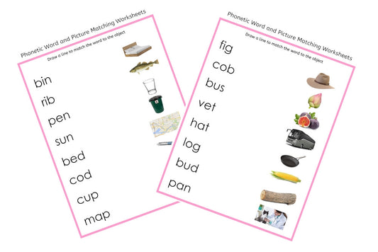 Pink Word and Picture Matching Worksheets, Cursive (PDF)