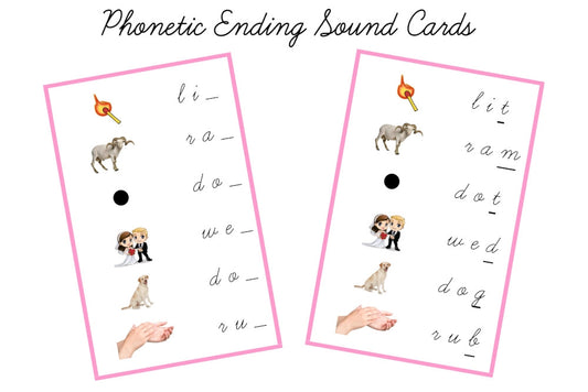 Pink Ending Sound Choice Cards, Cursive (PDF)