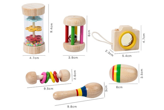 6-Piece Wooden Baby Rattle Set